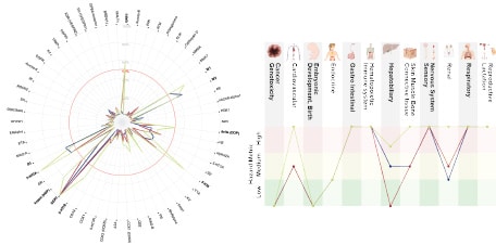 Figure 1 below: Secondary pharmacology data visualisation and interpretation figures displaying Organ System Hazard Metric Profile (OSHMP).